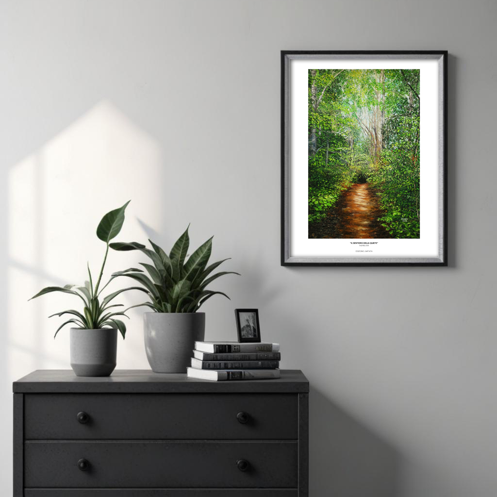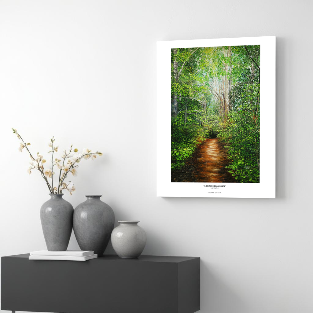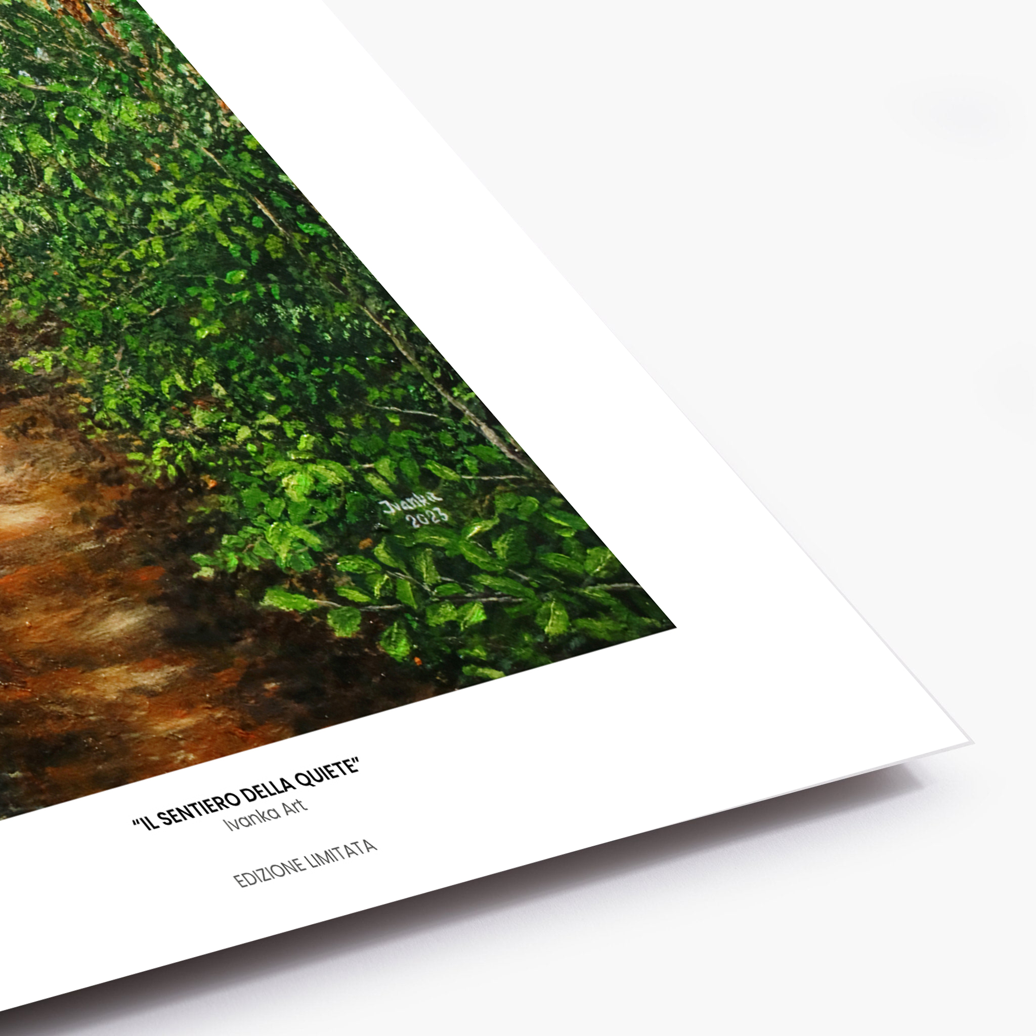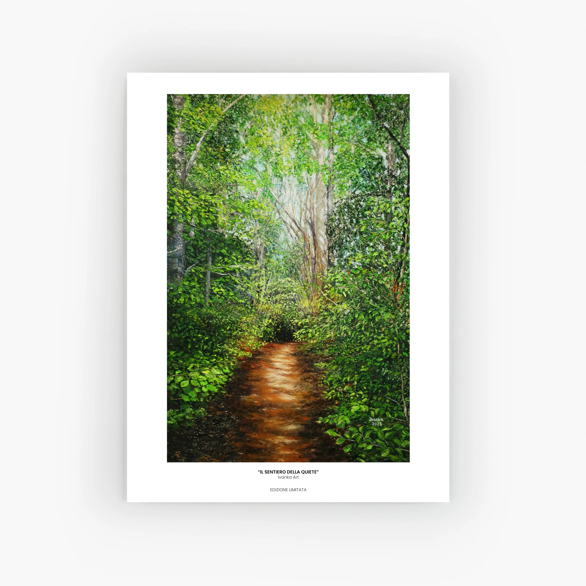Stampata in tiratura limitata, Il Sentiero della Quiete è un invito visivo a ritagliarsi ogni giorno un momento di calma, lasciando che la bellezza del paesaggio diventi parte del proprio vivere.