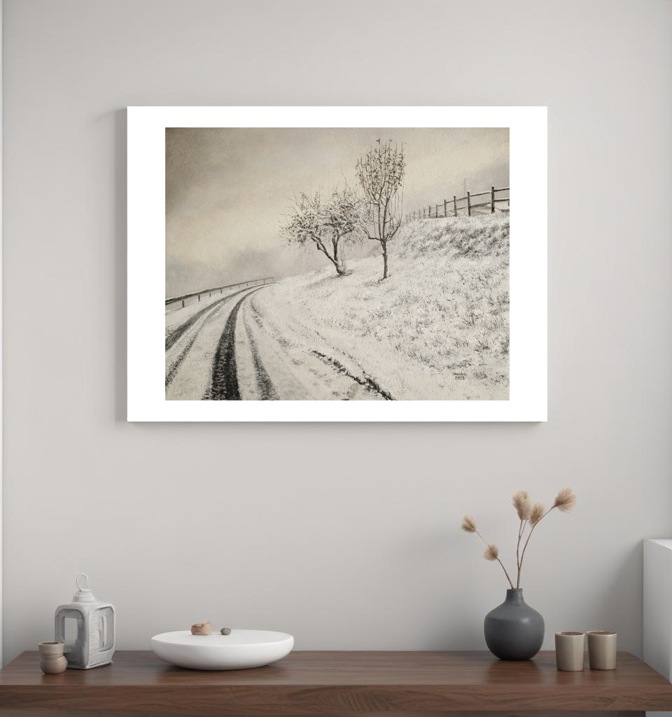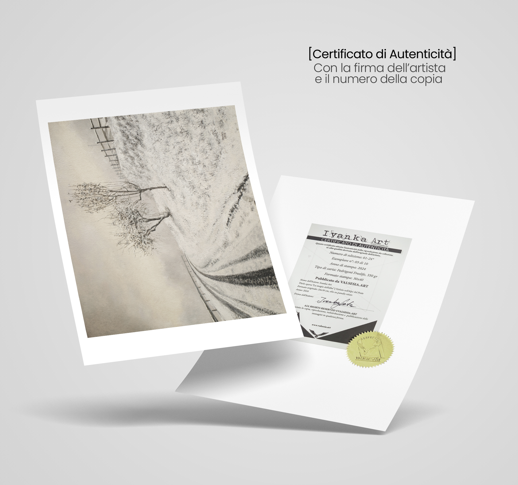 Tracce d’Inverno è un omaggio alla poesia della neve, a quelle prime impronte che raccontano storie senza parole. Un’opera che celebra il lato più romantico dell’inverno, dove ogni segno diventa memoria e ogni cammino si trasforma in contemplazione.