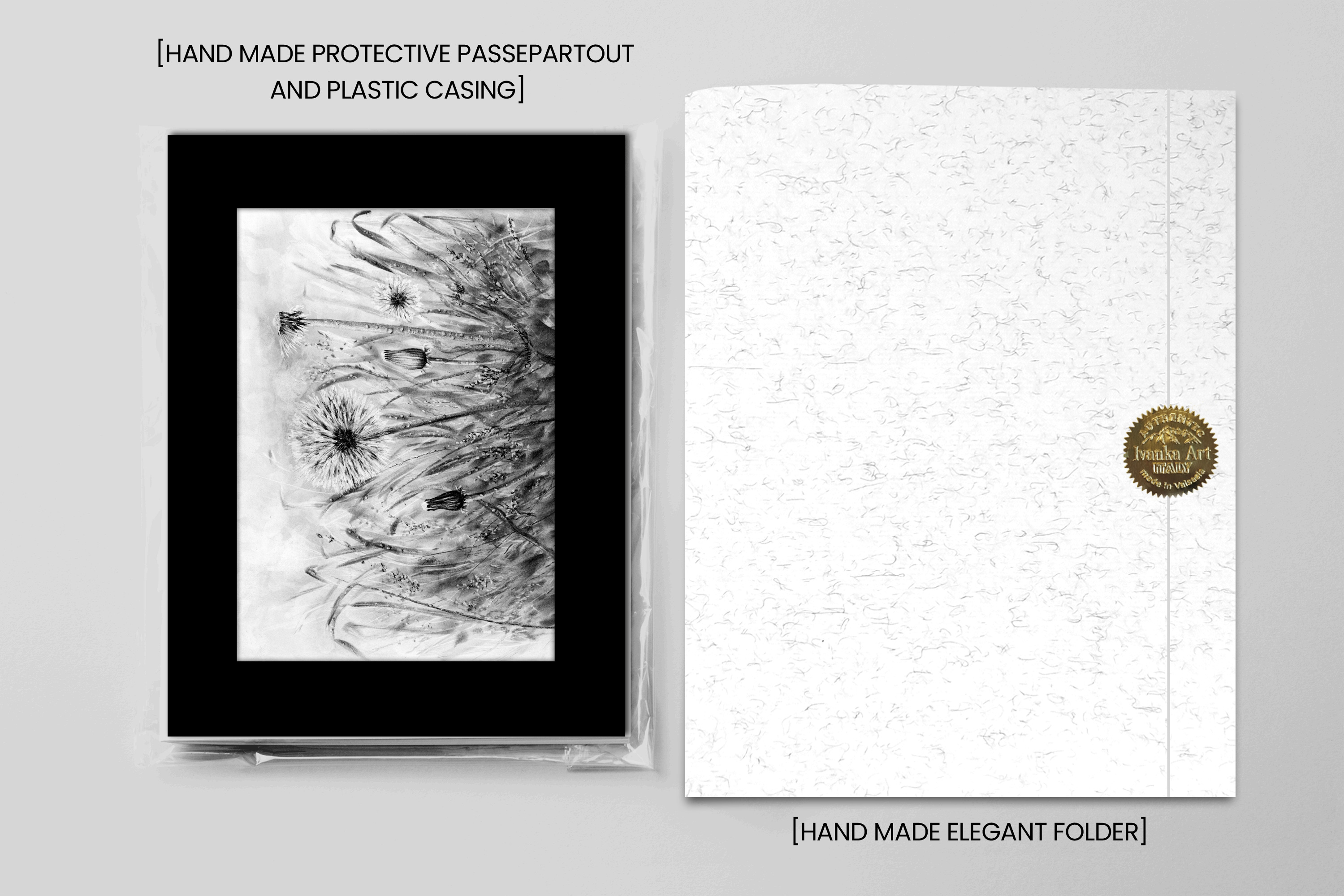 • Passe-partout nero artigianale, realizzato a mano dall’artista con cartoncino italiano di alta qualitĂ , privo di acidi.